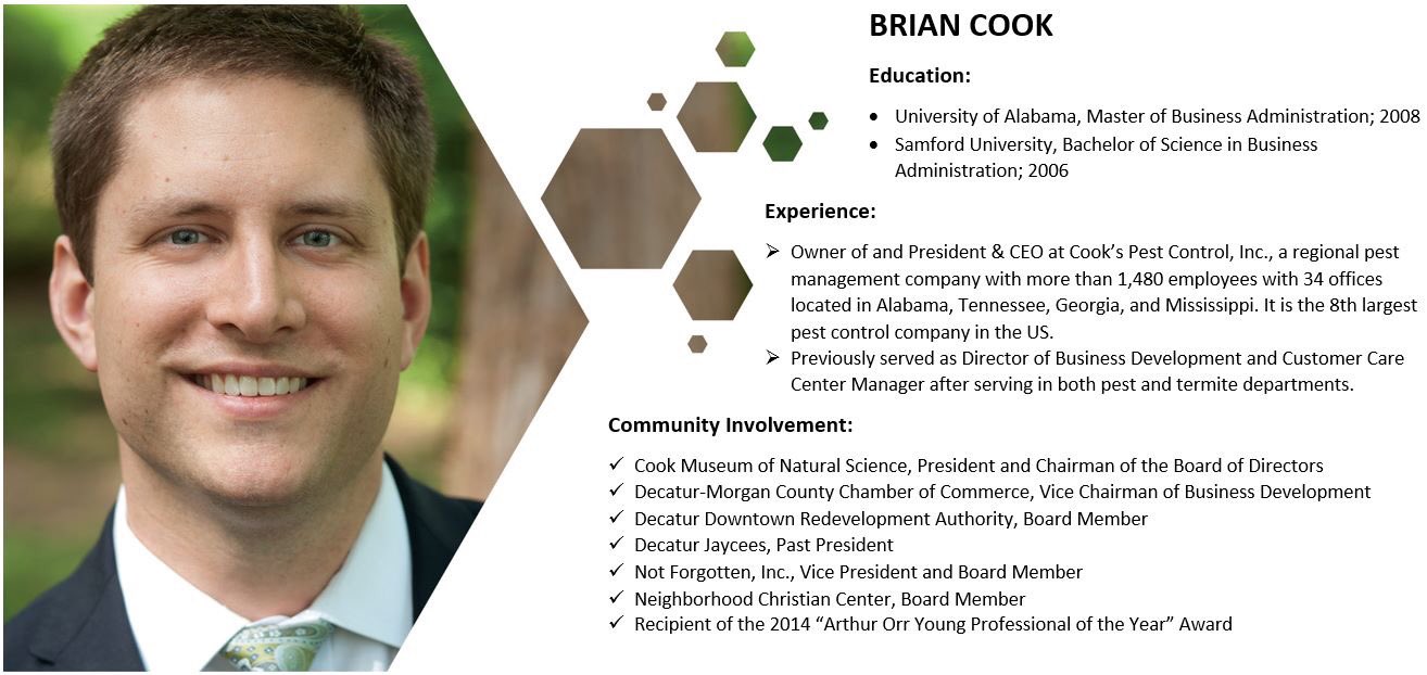 Firms and is now executive vice president over finance and accounting, human resources, property management, legal, technology, marketing and advertising for cook's pest control, inc. Certified pest control operators association. Cook's pest control services the southeastern region of the united states (alabama, arkansas, florida, georgia, mississippi, and tennessee). Cooks pest control inc surgical and medical instruments and apparatus. And • arthur orr has been named executive vice president. Cook's has been providing pest control, termite control, and mosquito control in your neighborhood for more than 90 years. • brian cook has been named president and ceo; Arthur also served as legal counsel throughout the asia/pacific region, traveling to numerous countries and negotiating with government officials, aid after serving beyond his initial term with habitat, he returned to decatur where he joined cook's pest control, inc. Cook's pest control has 395 employees across 16 locations. He was born in 1964 in decatur. Arthur orr (born may 25, 1964) is an american politician serving in the alabama state senate and as the executive vice president for cook's pest control. Executive vice president/chief operating officer. A free inside look at company reviews and salaries posted anonymously by employees.
