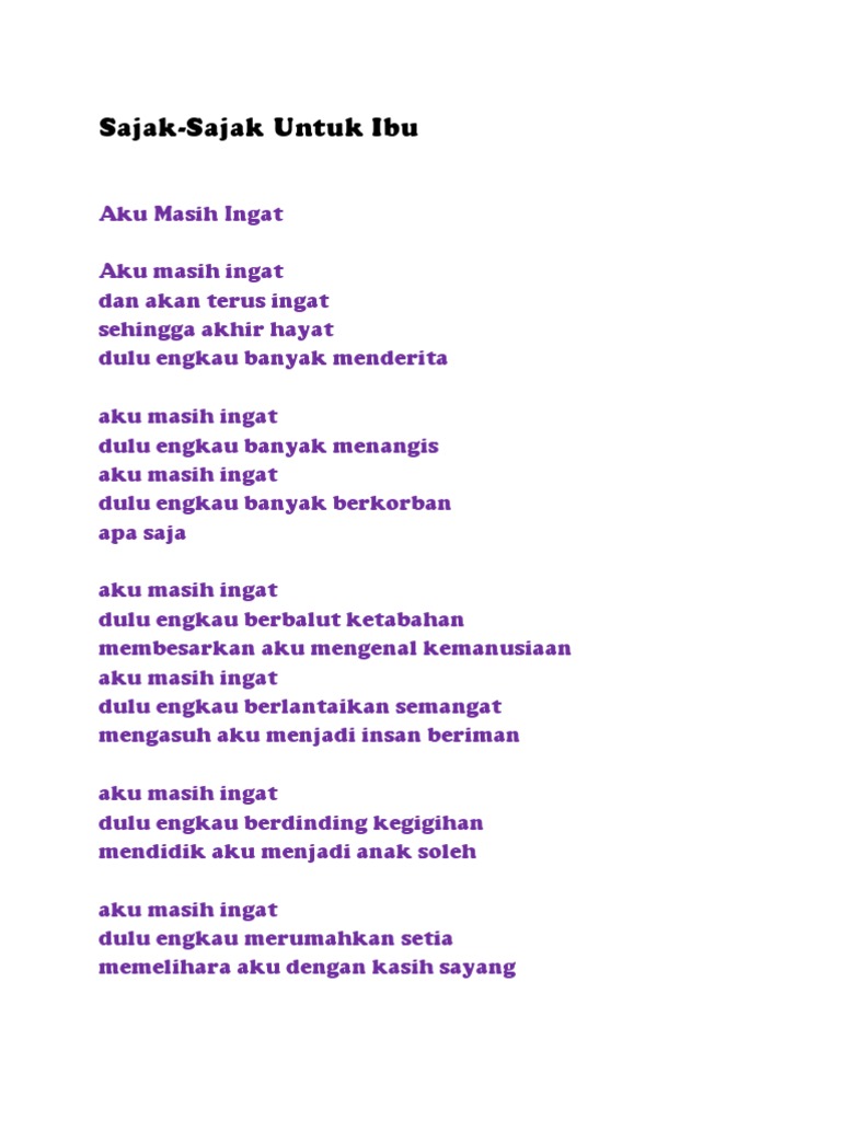 Supaya nanti bisa admin tambahkan ke daftar kumpulan. Seorang suami mungkin sangat mencintai istrinya. Kasih sayang itu penting agar perkawinan kuat. Kemudian anak tersebut mulai membuka dan membaca tulisan yang ada pada buku itu, buku tersebut adalah buku diary ayahnya pada waktu anaknya baru berumur 4 tahun. Suami maupun istri perlu tahu bahwa mereka masih dicintai dan disayangi oleh pasangan mereka. Walau sudah mantan, tapi aku masih sayang. Yuk kita simak lagi kelanjutan kisah kasih sayang seorang ayah kepada anaknya. Pantun cinta #12 sayang adik sayang kakak beli baju beli sendal buat kamu apasih yang enggak besok kita liburan ke kendal. Saat ini, menggunakan contoh pantun dalam memperkenalkan diri di hadapan orang lain memang terkesan ketinggalan, kuno dan sudah tidak zamannya. Biasanya, istri lebih membutuhkan pernyataan kasih sayang daripada suami. Nasihat yang diberikan kepada orang muda tentang kepentingan kasih sayang. Dari surabaya ke malang semua momen tak akan terbuang kalau sayang susah menghilang dulu hingga hanya kamu yang ku sayang. Selain cinta dan kasih sayang, islam sendiri mendasarkan pembentukan sebuah keluarga atas dasar keimanan dan ketakwaan kepada allah swt.