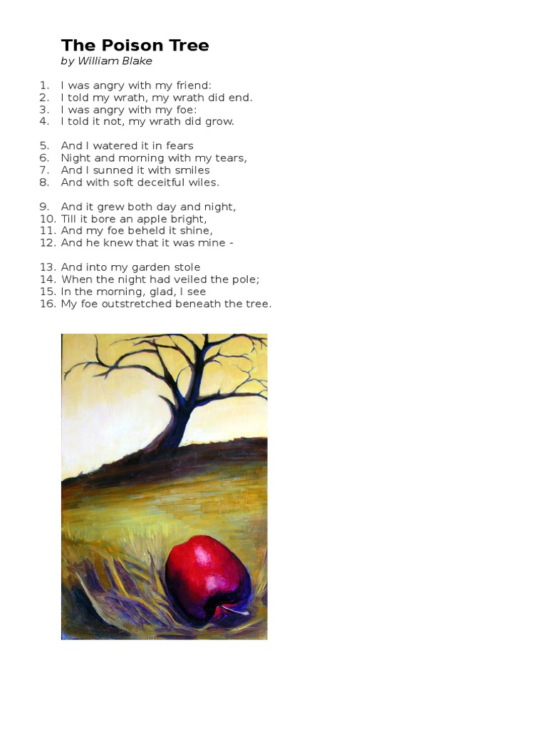 William blake is somewhat rare among british poets: A poison tree is a poem that focuses on the emotion of anger and the consequences for our relationships should that anger be suppressed. Stanza 1 i was angry with my friend: For more of this, do visit. Like most writers in the romantic period, willam blake's writing shifted from.