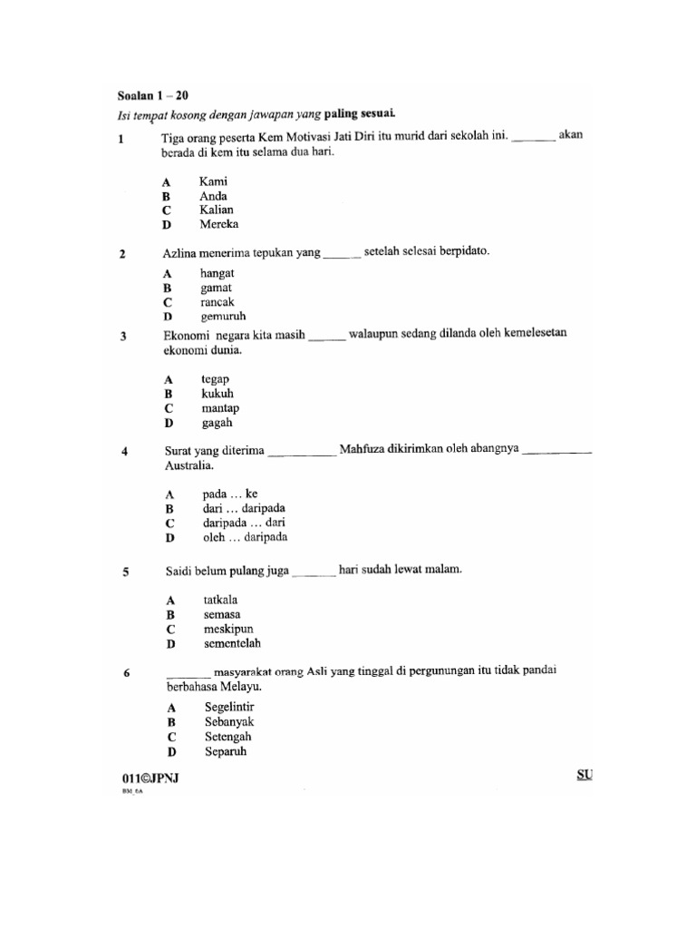 Murid tidak berupaya membuat sendiri latihan bahasa melayu. Koleksi soalan peperiksaan percubaan upsr (sk) 2016 + jawapan. Download as pdf, txt or read online from scribd. Begitu banyak persoalan tentang perubahan ini sehingga ianya menjadi satu fobia buat ibu bapa dan calon2 untuk menghadapinya. Modul latihan bahasa melayu upsr 2016 + jawapan. Lebih banyak latihan bahasa melayu upsr. Savesave latihan bahasa melayu kertas 1 upsr for later. Savesave latihan bahasa melayu kertas 1 upsr for later. Modul latihan bahasa melayu upsr 2016: Koleksi nota kssr sekolah rendah, soalan, latihan, dskp, rpt, rph, kpm,ipta, kssr, kssm, upsr, pt3, spm, stpm, ithink, saps, pajsk, apdm, ssdm. Teknik menjawab bahasa melayu penulisan tip menjawab soalan penulisan upsr a. Home pengajaran dan pembelajaran bahasa melayu latihan bahasa melayu (ayat seruan). Kertas peperiksaan ini mengandungi 20 soalan percubaan.
