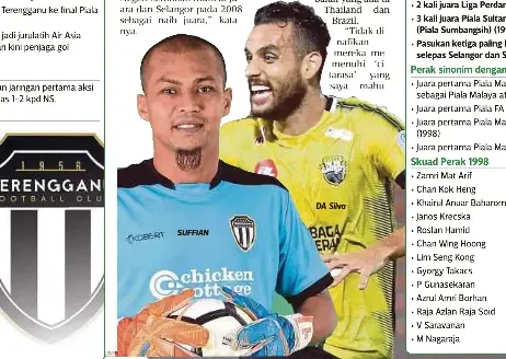 Mohd Suffian Abdul Rahman - Facebook - Penjaga gol berpengalaman terengganu fc (tfc), mohd suffian abdul rahman bertekad mengulangi aksi cemerlang ketika bertemu bekas majikannya, negeri sembilan (ns) di stadium sultan ismail nasiruddin shah, malam esok.